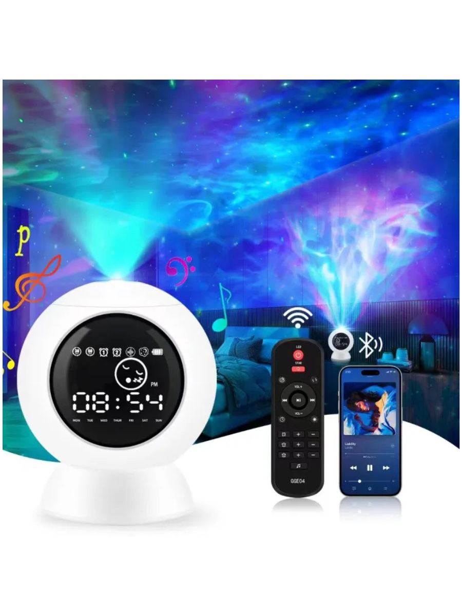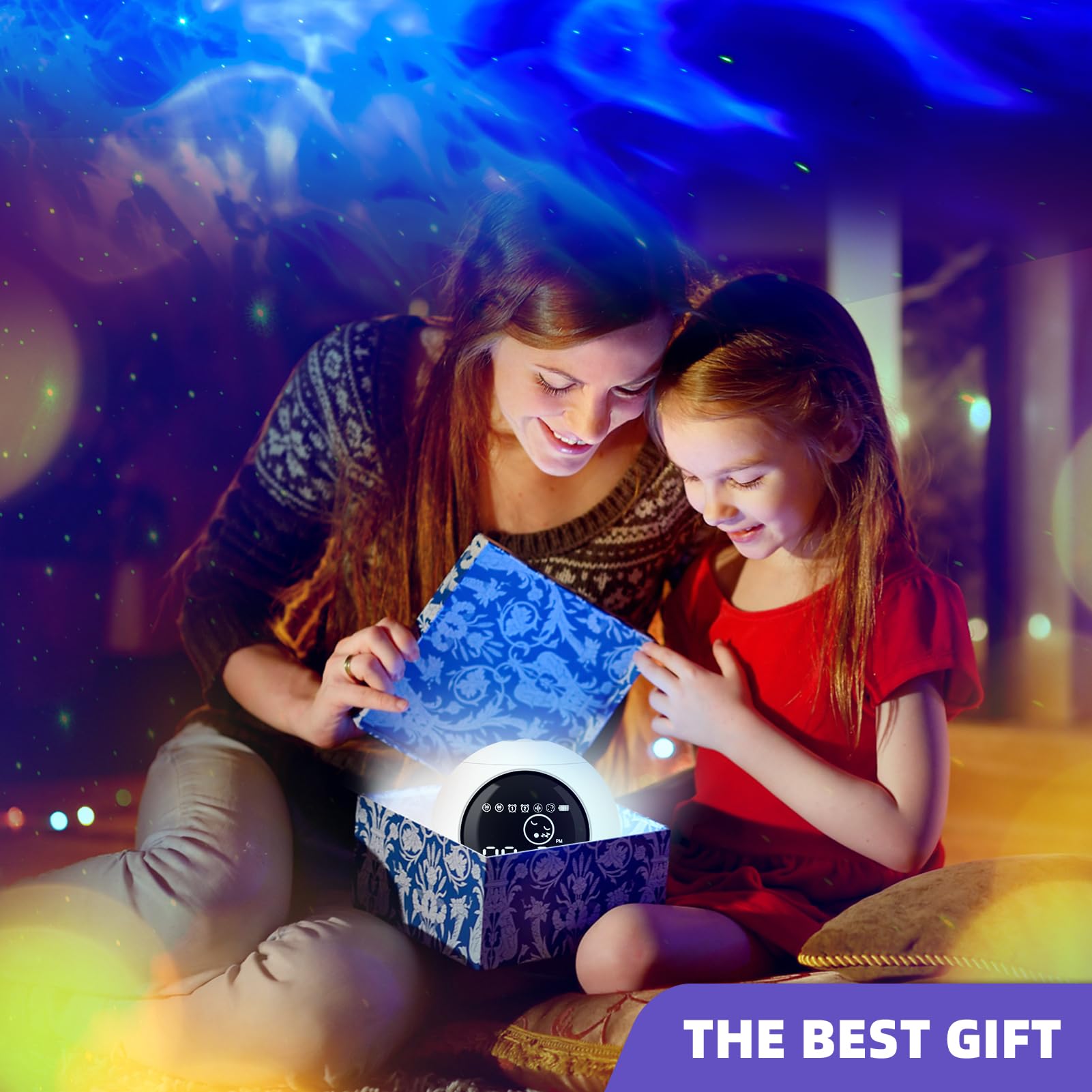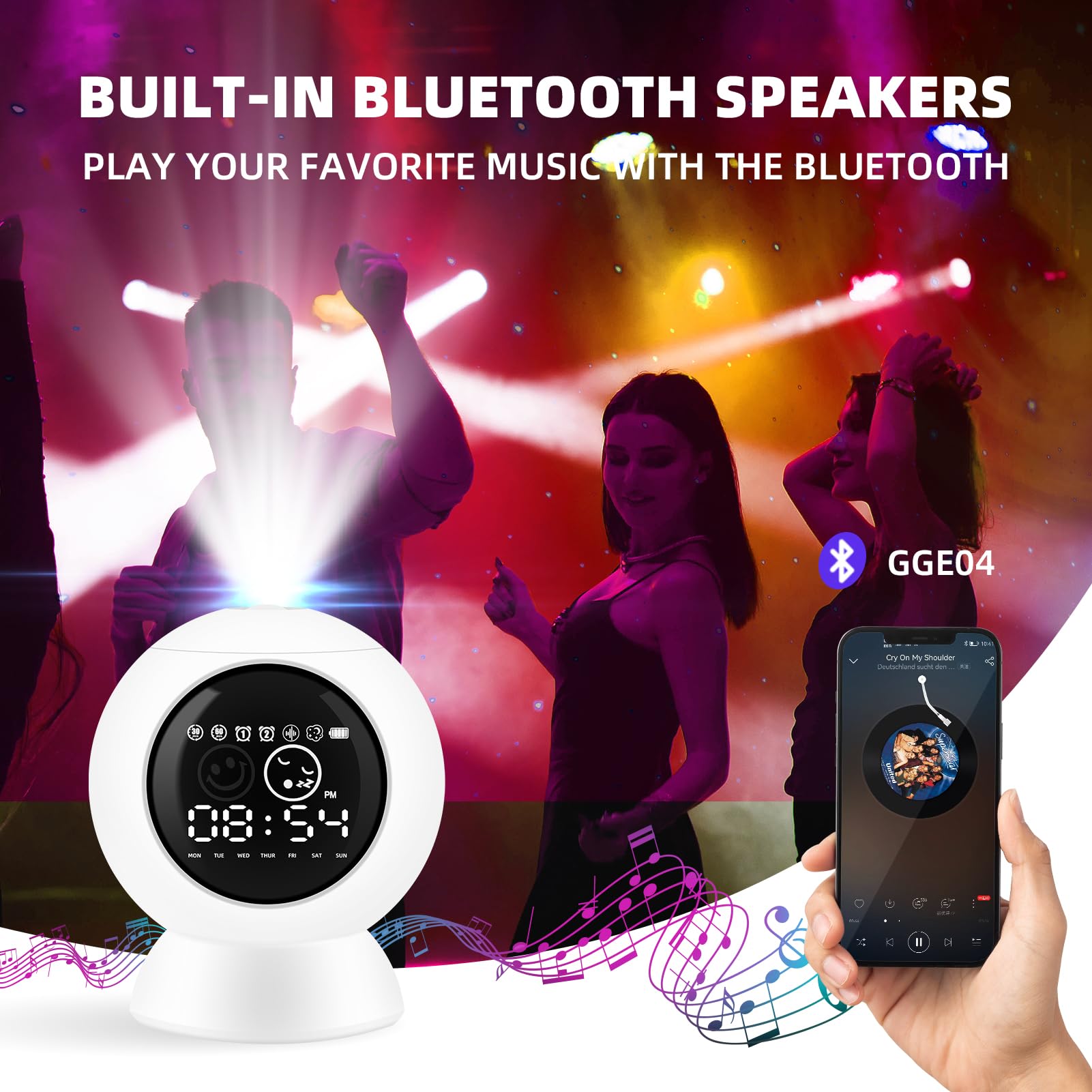 - ✨【Upgraded 4-in-1 Star Projector】: Galaxy Projector + Alarm Clock + Sleep Sound Machine + Bluetooth Speaker. It now features dual projection lens, able to project galaxy lights effect with RGB colors and lively star lights skies to create a relaxing atmosphere with soothing white noise and music, bringing you to enjoy the beauty of nature. Transform your living room into a beautiful and romantic gateway with peaceful moving lights.