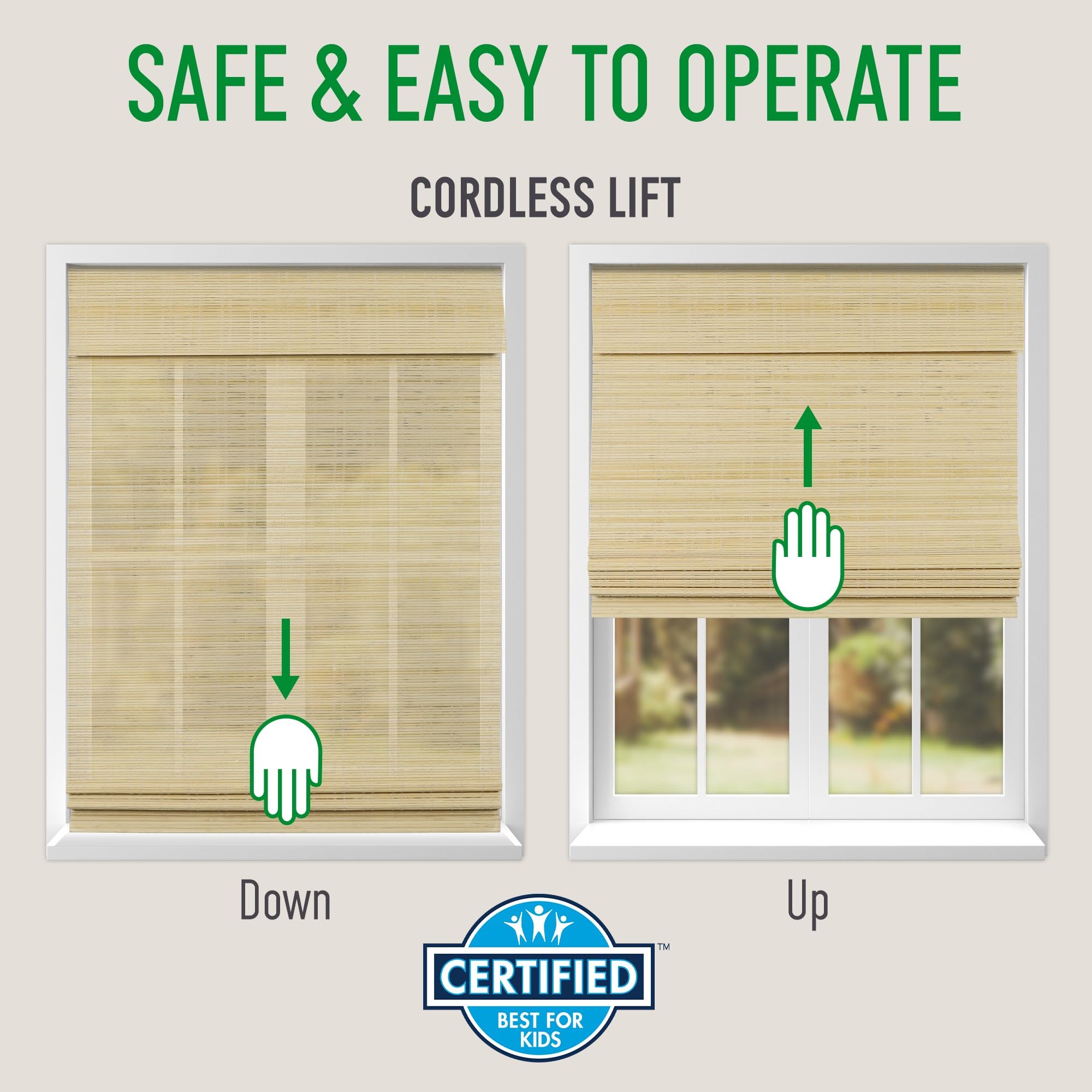 - SAFE for PETS & CHILDREN: The cordless lift system keeps unnecessary cords away from your pets and children.