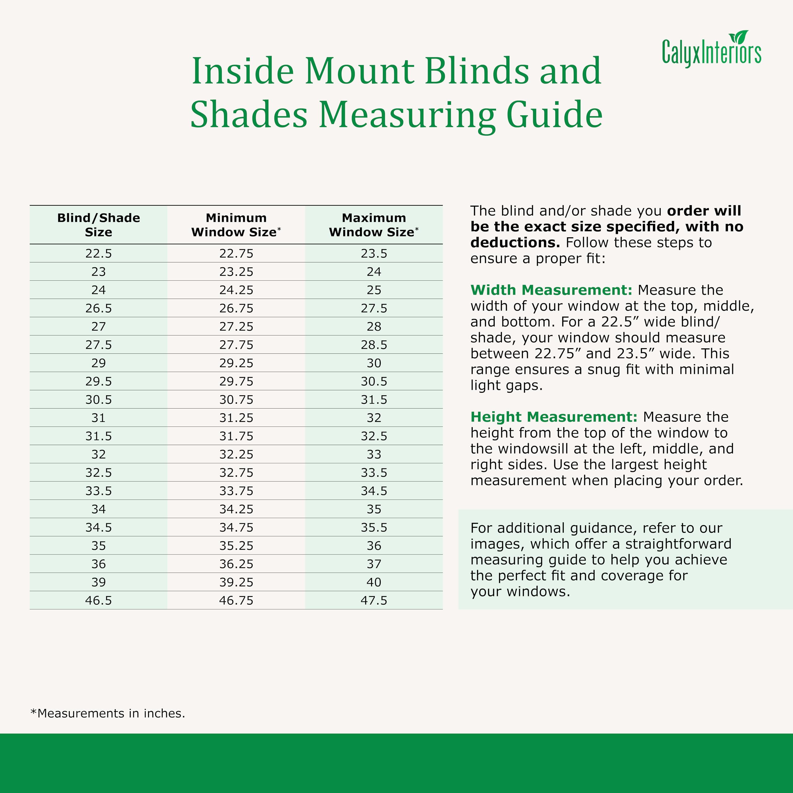- Attention: How to Measure for Inside Mount Bamboo Shades: The bamboo shade you order will be the exact size specified, with no deductions. To ensure a proper fit, measure the width of your window at the top, middle, and bottom. For a 30.5″ wide bamboo shade, your window should measure between 30.75″ – 31.5″ wide, allowing for a snug fit with minimal light gaps. Next, measure the height from the top of the window to the windowsill on the left, middle, and right sides, and use the largest height measurement when placing your order. For additional guidance, refer to our images, which offer a straightforward measuring guide to help you achieve the perfect fit and coverage for your windows.
