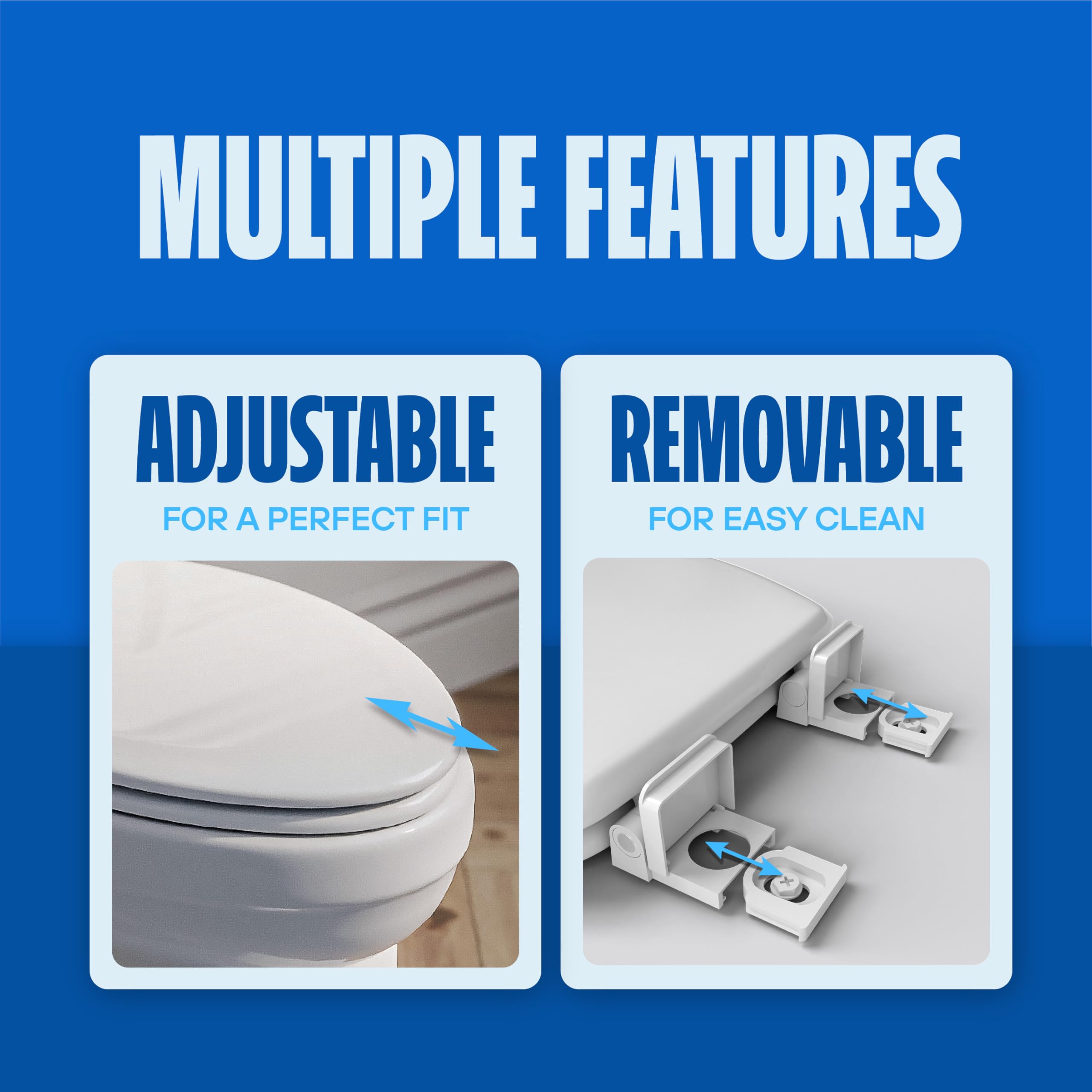 - Adjustable Hinge: Seat position can be Adjusted front to back for perfect Toilet Bowl fit.