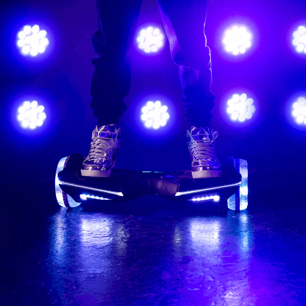 Get ready to rock the house with the Jetson Rave. Killer light patterns illuminate the wheels and the frame to the next level. An awesome ride experience with multiple levels of sensitivity for quick and sporty moves. On board Bluetooth speaker so you can bump anything on your playlist.