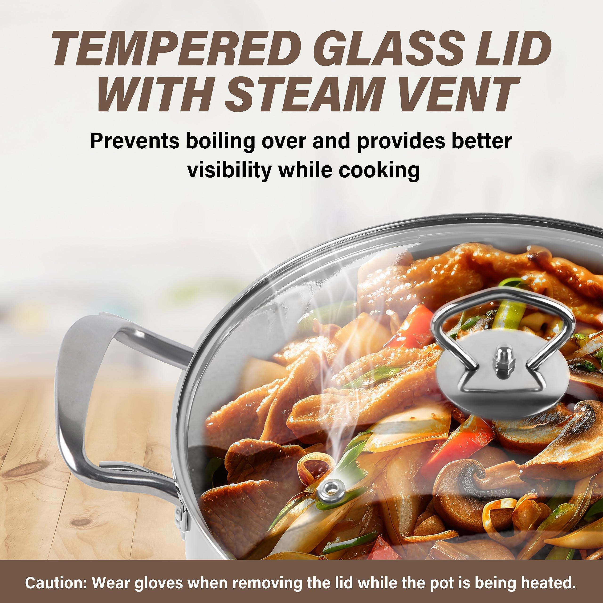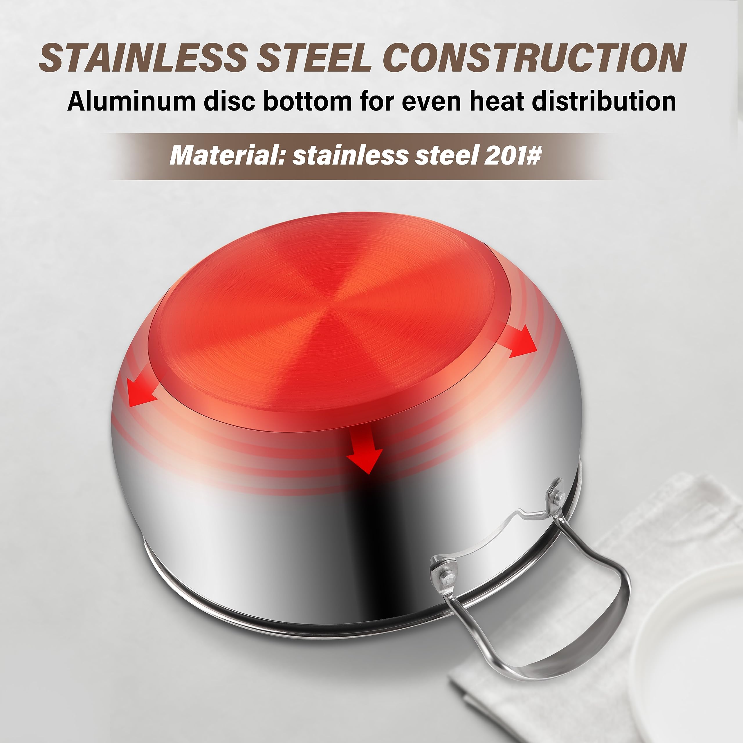 - Versatile Induction Bottom: Equipped with a 1.0mm aluminum, 1.0mm iron, and SS430# bottom plate for induction compatibility and even heating.