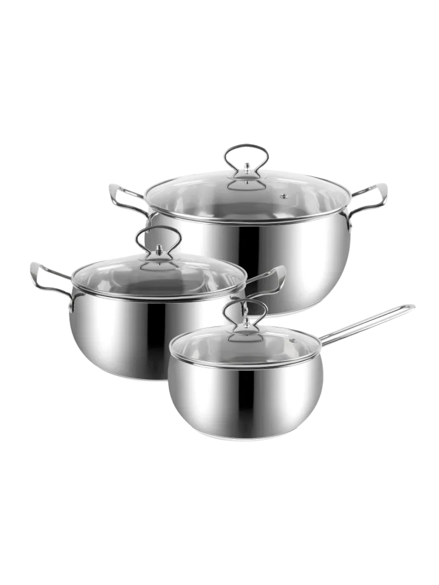 Details: Upgrade your kitchen with our Stainless Steel 6-Piece Cookware Set. Made of durable stainless steel 201#, the set features a straight shape, mirror-polished interior and exterior, and sturdy SS handles and knobs. The induction bottom ensures even heating. Elevate your cooking experience today.