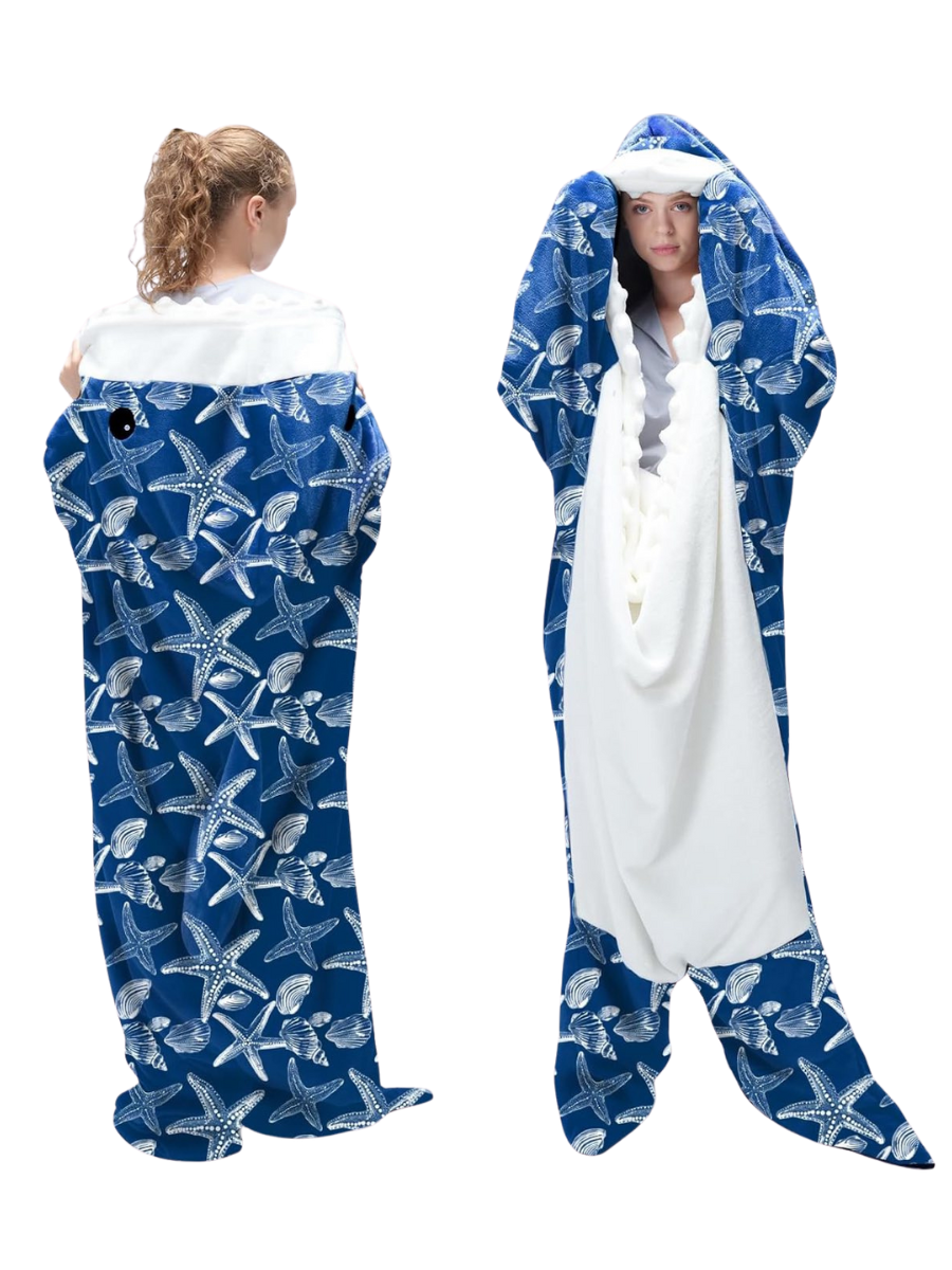 Wearable Blue Starfish Shark Blanket Hoodie, L (UPC-486P)